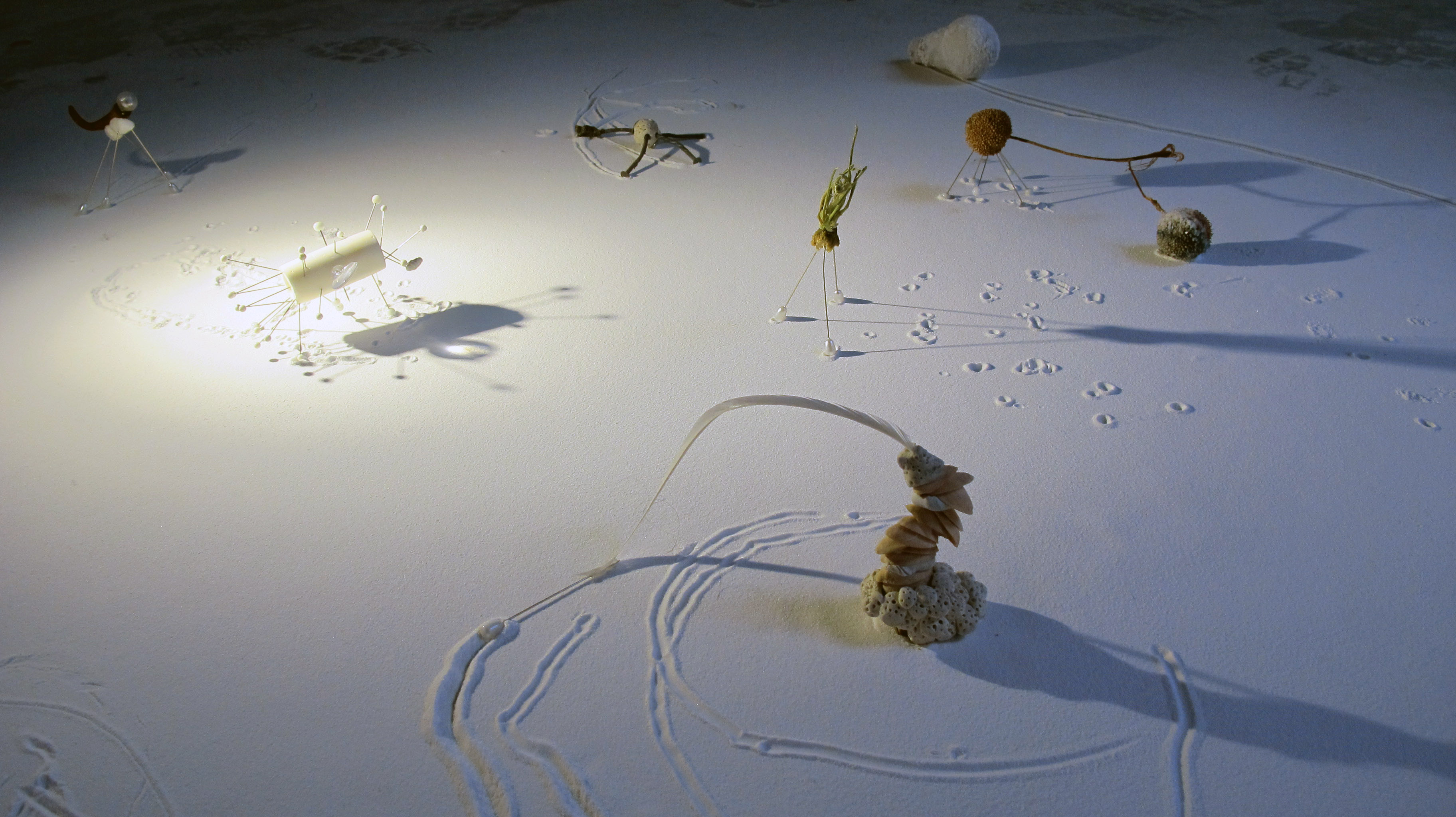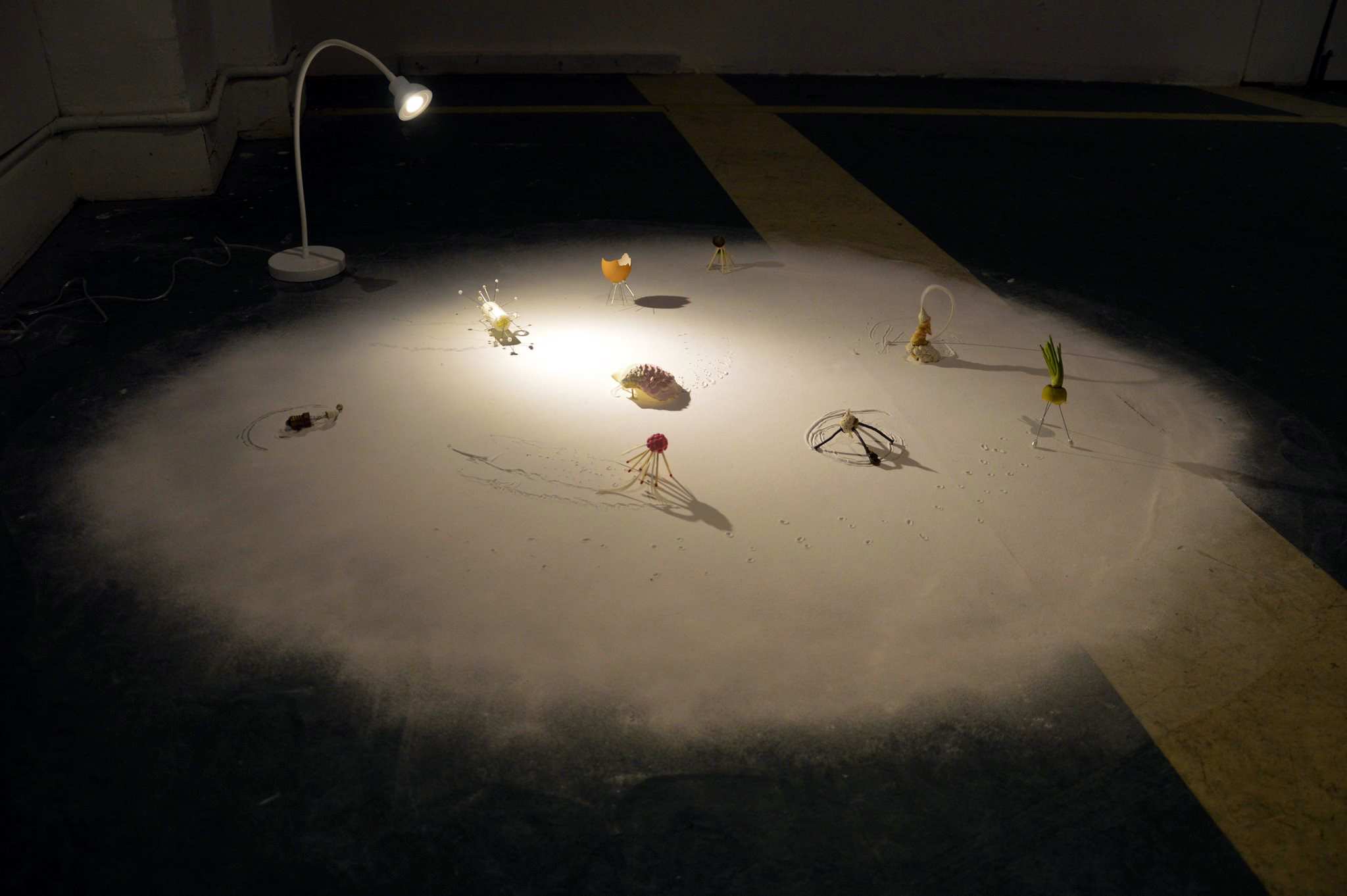 There is Only In-between Date: December 10, 2013Author: nadegeart Post navigation ← A Thing Among Things I Hatched: National Graduate Art Show → images thanks to Kate Simpson and Leni Philippe-Janon There is Only In-between. 2013, sodium bicarbonate, lamp, various materials small objects ‘walked’ onto a layer of sodium bicarbonate on the floor, leaving their marks behind