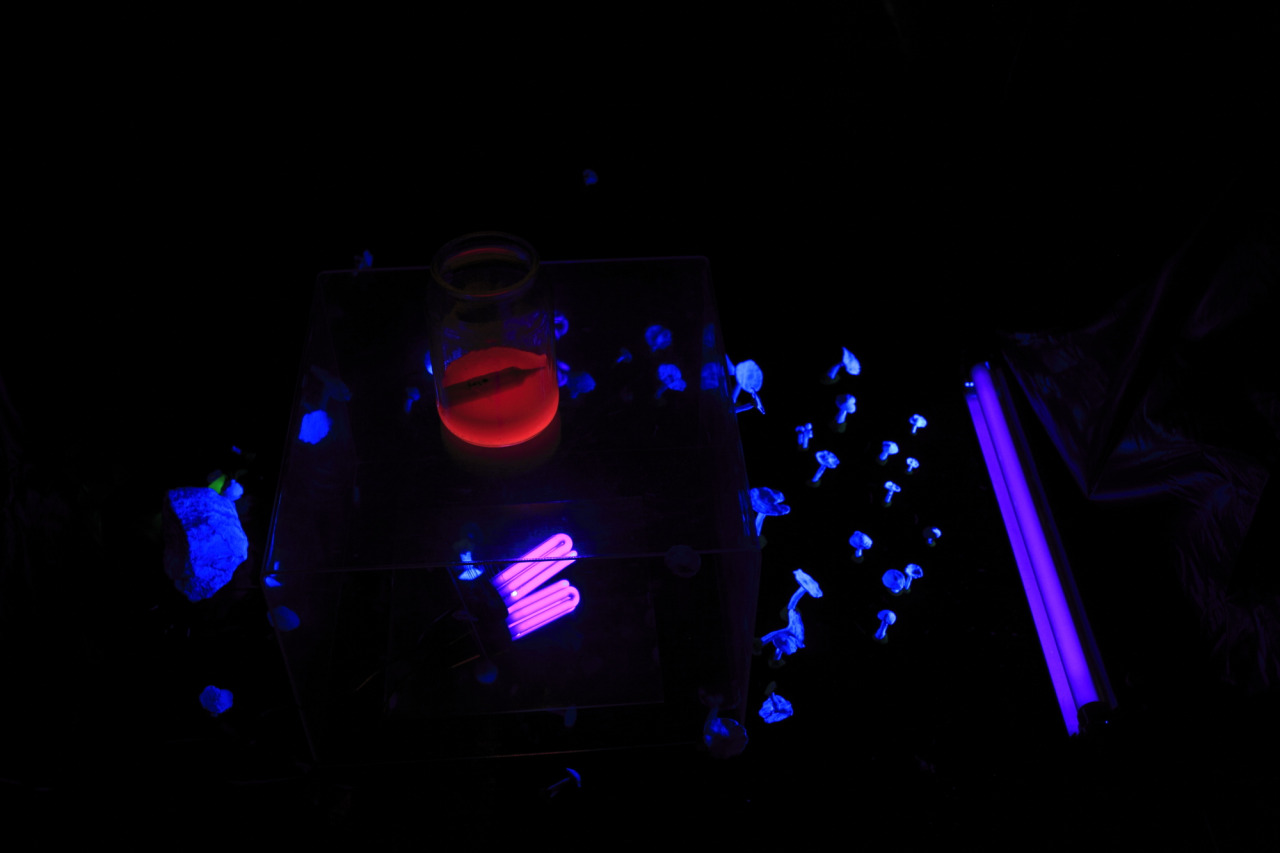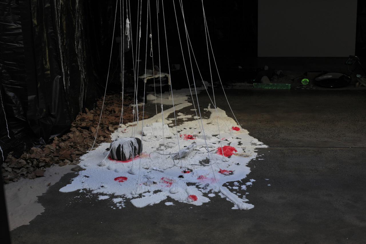 Collaboration with Felix Wilson. 2014 – various materials inc. sand, leaves, urea crystals, water, fans, sound, video