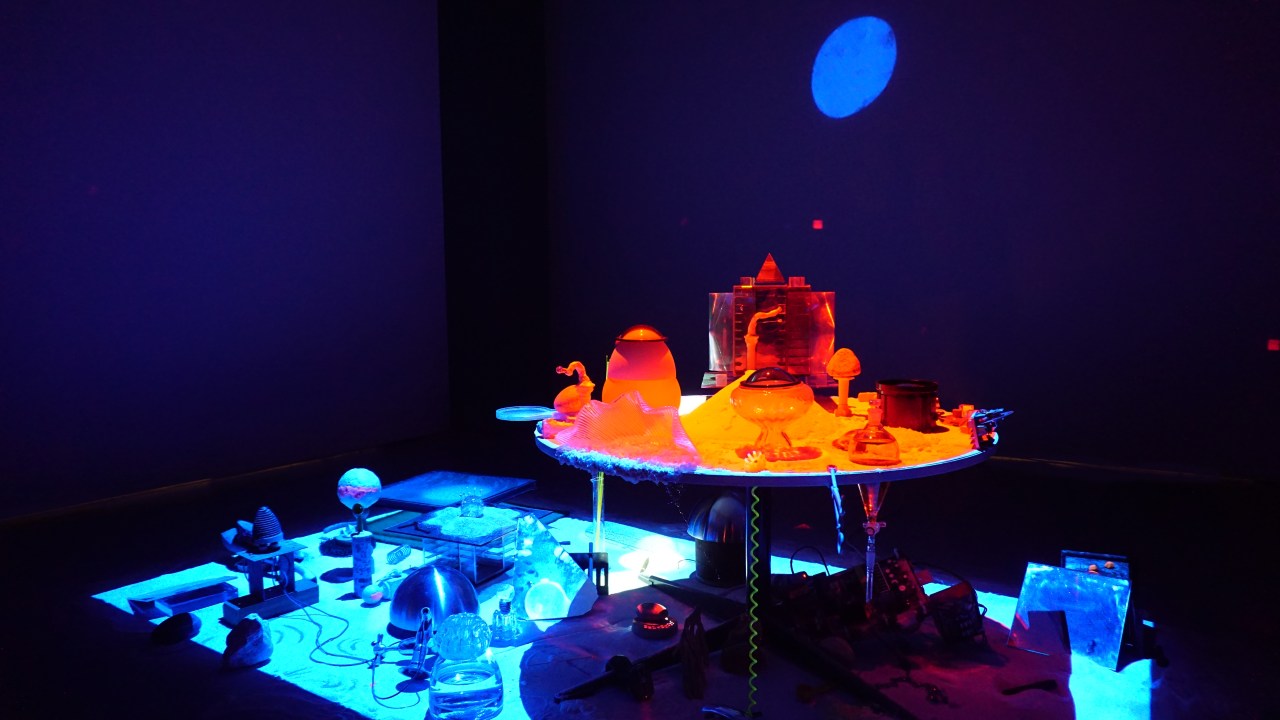 installation documentation, animation loop, salt, water, motors, glass prisms, various materials