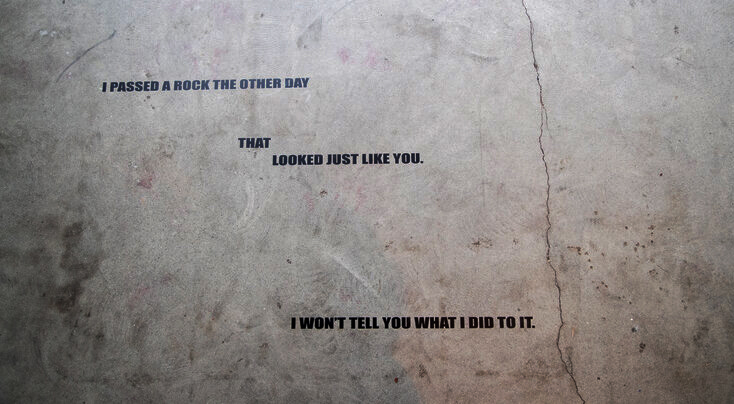 For ‘Would Move Me More Than Glitter’ exhibited at Good Grief (2019), the sexts are displayed as vinyl lettering scattered throughout the gallery space amidst works by Amber Koroluk-Stephenson, Liam James and Priscilla Beck.